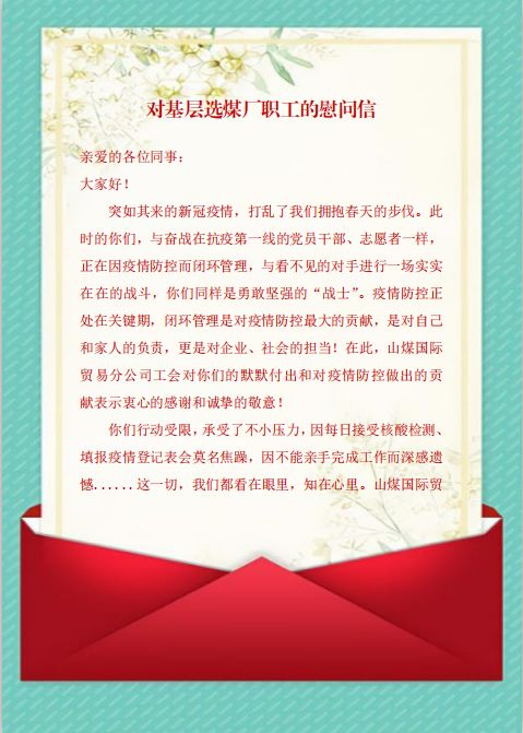 會上,女工部部長張倩倩宣讀了《關(guān)于調(diào)整女工家屬安全協(xié)管工作委員會的通知》等相關(guān)文件。會議指出,廣大女工協(xié)管員要以宣傳安全、看護安全、協(xié)管安全為己任,堅持用細語理順情緒、用柔情化解矛盾、用人性滋潤管理默默筑牢煤礦生產(chǎn)安全的第二道防線,為霍爾辛赫煤業(yè)安全發(fā)展作出應(yīng)有貢獻。
