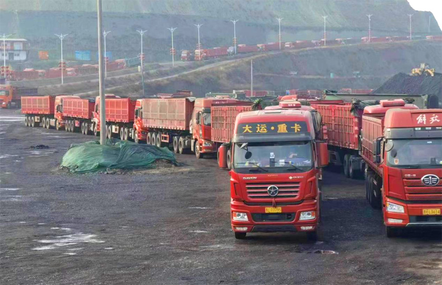 河曲露天煤業(yè)的煤炭運輸方式主要為公路運輸,運輸通道暢通是必要條件。為此,馮敏同志多次帶領(lǐng)礦調(diào)度室、生產(chǎn)技術(shù)部、生產(chǎn)區(qū)、保衛(wèi)部、洗選運銷部實地踏勘,開會研究、解決煤炭外運問題,對運煤車輛待裝區(qū)進行多次選址,解決運煤車輛與工程車輛交叉等問題,最終實現(xiàn)煤炭外運車輛空車、重車分流,與工程車輛分車道行駛,煤炭外運車輛待裝區(qū)可容納運煤車150余輛。