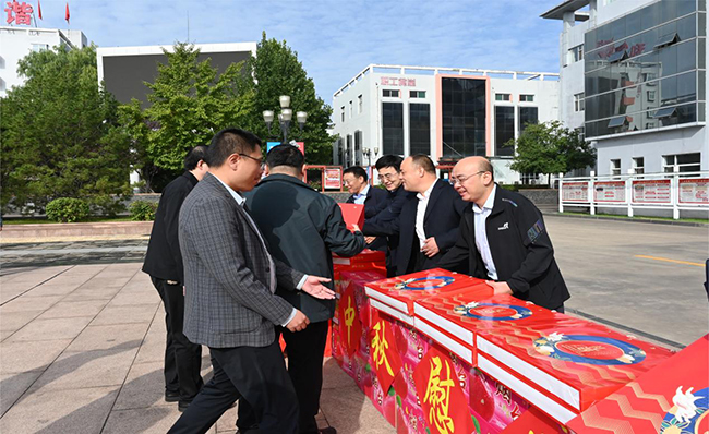 秋風送爽,丹桂飄香,祖國華誕,舉國歡慶。在中秋、國慶雙節(jié)來臨之際,為切實體現(xiàn)公司的溫暖與關懷。9月29日,霍爾辛赫煤業(yè)黨委書記、董事長李建功,經(jīng)理楊勇等領導班子成員深入公司生產(chǎn)各崗位,看望慰問節(jié)日期間仍堅守崗位的一線職工,為他們送去月餅、蘋果、桔子等節(jié)日慰問品并致以節(jié)日的問候和祝福。